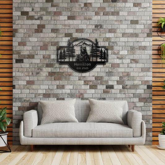 Personalized Bear Family Metal Sign – Custom Cabin & Family Name Wall Art